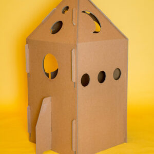 Este cohete ha sido 100% diseñado en Barcelona y elaborado con cartón muy resistente y reciclable, contribuyendo así a la preservación del medio ambiente. Una vez montado se puede desmontar fácilmente en pocos minutos.