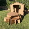 Taula i tamborets de cartró per a nens. Hi podran dibuixar, pintar, jugar i prendre el te! Magnífica tauleta a joc amb la nostra caseta Lu-hosuse.