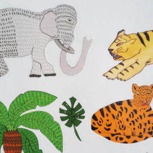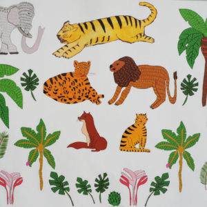 Preciosas estampaciones con variados dibujos de simpáticos animales, hojas y palmeras de diversos tamaños. Figuras inspiradas en la naturaleza y en el mundo animal que siempre acompaña la creatividad de los más pequeños. En total cada lámina contiene unas 20 pegatinas individualizadas.